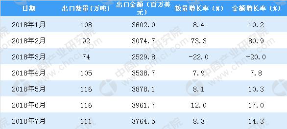據(jù)中商產(chǎn)業(yè)研究院數(shù)據(jù)庫顯示,2013年-2017年中國塑料制品出口量逐漸增長,2018年1-7月中國塑料制品出口量為722萬噸,同比增長9.4%。