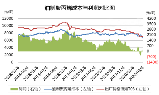 原油的暴跌一方面造成塑料成本支撐驟減,尤其是油制聚丙烯成本支撐瞬間坍塌,據(jù)中宇資訊數(shù)據(jù)統(tǒng)計油制聚丙烯成本下降近1000元/噸。另一方面打壓市場情緒,與國際油價緊密相關(guān)的國內(nèi)市場也受影響。國內(nèi)期市開盤后多數(shù)品種下跌,燃油、瀝青、PTA、甲醇、塑料等能化類品種開盤跌停。聚丙烯市場恐慌氣氛蔓延,一時間市場利好難覓,看跌氣氛加重,市場重心下行成交價格甚至突破近3年的新低