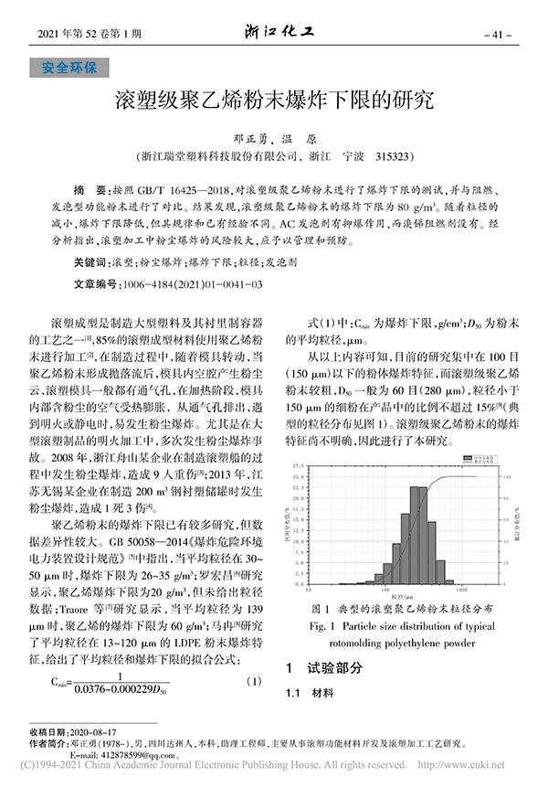 滾塑級(jí)聚乙烯粉末爆炸下限的研究