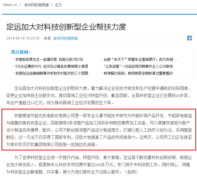 【2014-5-16】定遠(yuǎn)加大對(duì)科技創(chuàng)新企業(yè)扶持力度