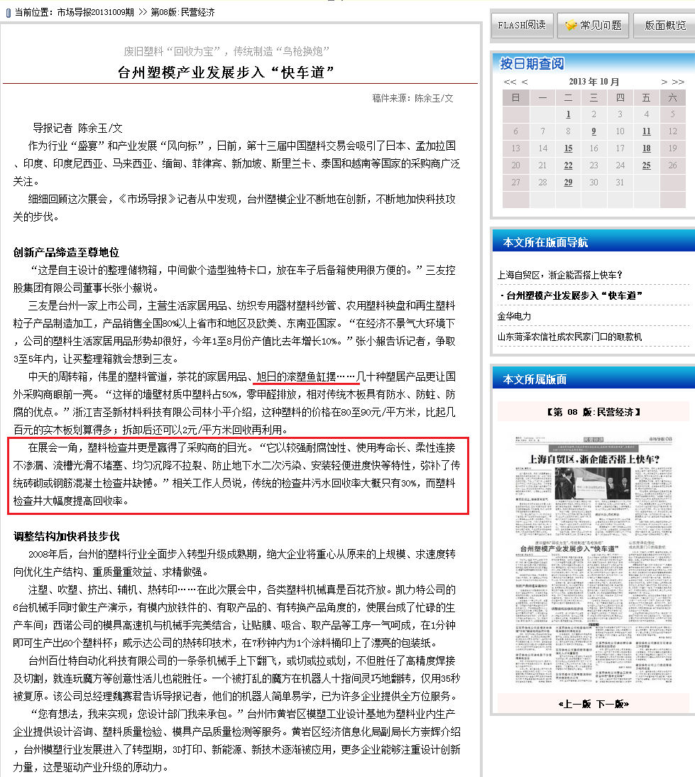 【2013-10-9】臺州塑模產(chǎn)業(yè)發(fā)展步入快車道